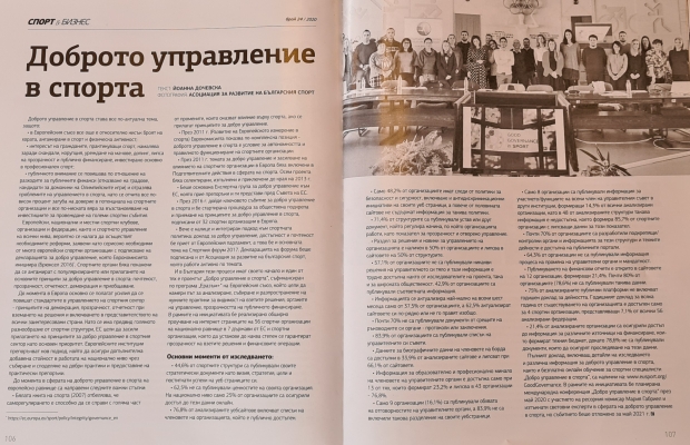 In Bulgaria, too, these processes have their origins and one of them is the project "Good governance in sport", co-funded by the Erasmus + program of the European Union, which aims to find a way to analyze, collect and disseminate the necessary practices for visibility, decisions, governing bodies, transparency of public funding. The initiative conducted an extensive survey of the websites of 56 national sports organizations in seven EU countries and sports organizations to determine the extent to which transparency of decisions and financial transactions is ensured.