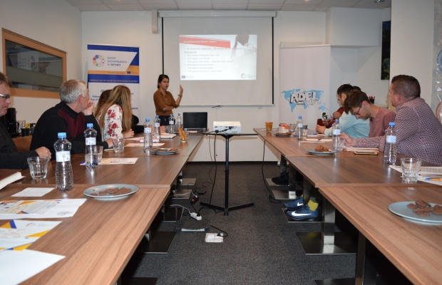 A.D.E.L. Slovakia organized 2 dissemination events to inform local sport stakeholders about the results of #GoodGovernanceSport project activities until the moment. First dissemination event was organized on 22 March 2019 and gathered 13 representatives of sport clubs, federations and Slovakian Sport ministry. Second dissemination event was organized on 30 April 2019 and 17 participants from clubs, sport associations and municipality attended the event. Project, its results and ouputs of the first research, activities of the project were presented. Partner organization also shared with participants information about Erasmus+ Sport Programme, possibilities how to get funding and examples of our previous projects. During the event, interesting conversations about the topic of Good Governance has been realized, compared situation in Slovakia and other countries, but also planned future cooperation and initiatives in this field.